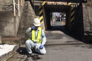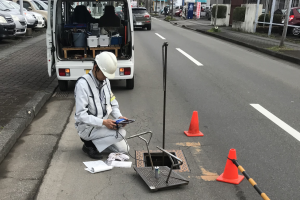 管路監視調査 漏水多発地区や主要道路・軌道横断など、最も有効と思われる弁栓類に、常設型監視機器を設置して巡回します。なお、異常音を検出した場合、同時相関機能により漏水位置を特定します。